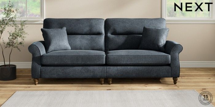 7.2.10 Ashford Highback 4 Seater Sofa Plush Chenille Slate Blue Low Turned - Mid | Made Click here to use our website with more accessibility support, for example screen readers
