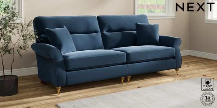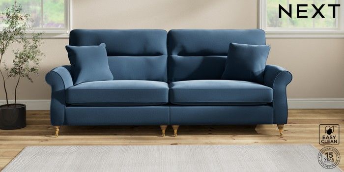 7.2.10 Ashford Highback 4 Seater Sofa Plush Velvet Easy Clean Airforce Blue Castor - Light | Made Click here to use our website with more accessibility support, for example screen readers