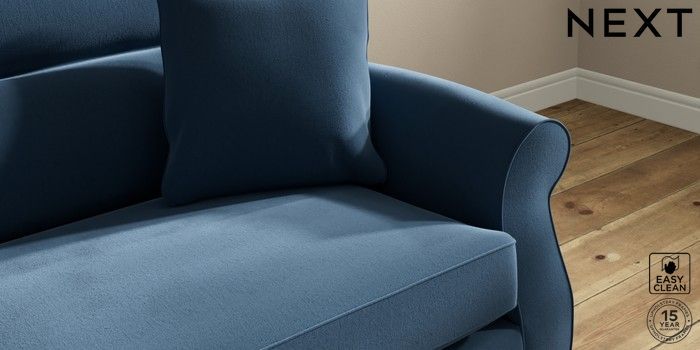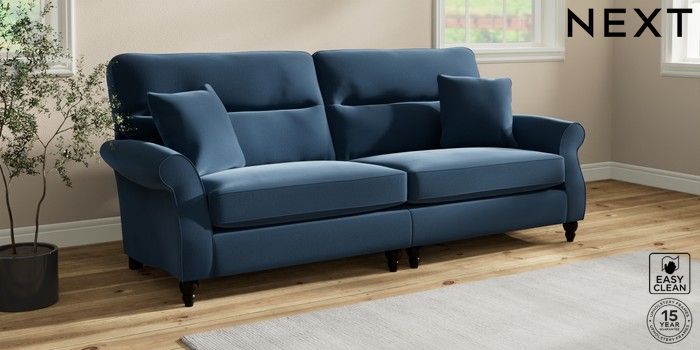 7.2.10 Ashford Highback 4 Seater Sofa Plush Velvet Easy Clean Airforce Blue Low Turned - Dark | Made Click here to use our website with more accessibility support, for example screen readers