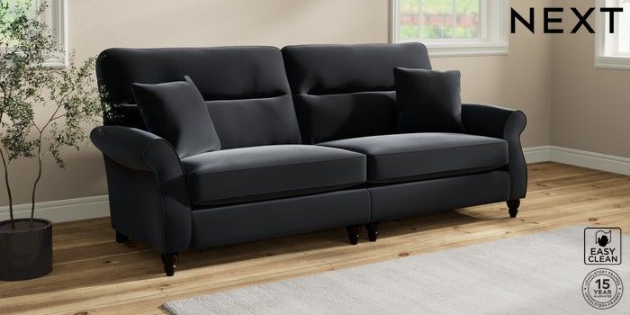 7.2.10 Ashford Highback 4 Seater Sofa Plush Velvet Easy Clean Charcoal Grey Low Turned - Dark | Made Click here to use our website with more accessibility support, for example screen readers