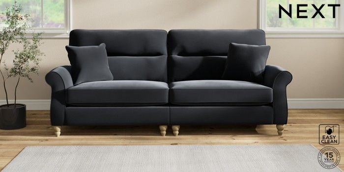 7.2.10 Ashford Highback 4 Seater Sofa Plush Velvet Easy Clean Charcoal Grey Low Turned - Light | Made Click here to use our website with more accessibility support, for example screen readers