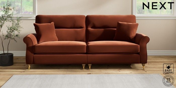 7.2.10 Ashford Highback 4 Seater Sofa Plush Velvet Easy Clean Ginger Orange Castor - Light | Made Click here to use our website with more accessibility support, for example screen readers