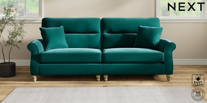7.2.10 Ashford Highback 4 Seater Sofa Plush Velvet Easy Clean Juniper Green Low Turned - Light | Made Click here to use our website with more accessibility support, for example screen readers