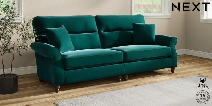 7.2.10 Ashford Highback 4 Seater Sofa Plush Velvet Easy Clean Juniper Green Low Turned - Mid | Made Click here to use our website with more accessibility support, for example screen readers