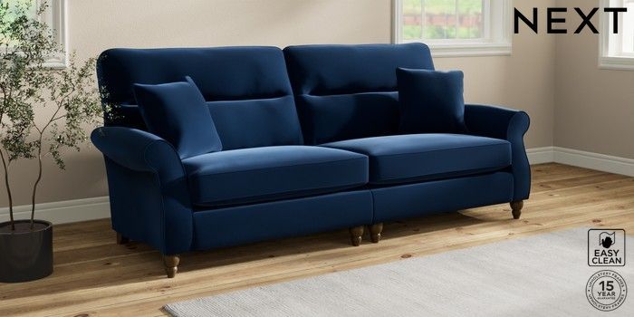 Sink into the Ashford high-back sofa, where country style meets ultimate comfort. Its generous size and elegant scroll arms give it a classic look. You'll love the extra back support from its higher design. The seats are designed for firm support and long-lasting comfort, with a special firmer high-density foam core sandwiched between soft foam toppers to give ultimate support, durability and recovery whilst offering a more tailored look that bounces back into shape – no need for constant plumping! These seat cushions are low maintainence and will return to their shape when they are not in use. We've added scatter cushions filled with a luxurious fibre mix for added comfort. Seat cushions are reversible.