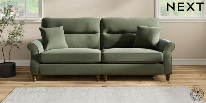 7.2.10 Ashford Highback 4 Seater Sofa Relaxed Linen Look Dark Green Low Turned - Mid | Made Click here to use our website with more accessibility support, for example screen readers