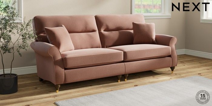 7.2.10 Ashford Highback 4 Seater Sofa Relaxed Linen Look Light Rust Brown Modern Turned Metal Cap - Mid | Made Click here to use our website with more accessibility support, for example screen readers