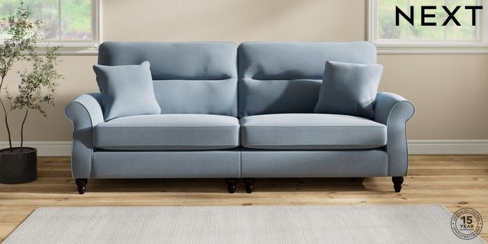 7.2.10 Ashford Highback 4 Seater Sofa Relaxed Linen Look Mid Blue Low Turned - Dark | Made Click here to use our website with more accessibility support, for example screen readers