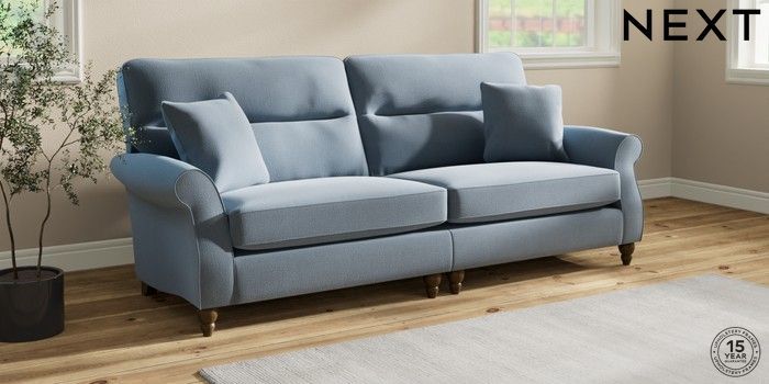 7.2.10 Ashford Highback 4 Seater Sofa Relaxed Linen Look Mid Blue Low Turned - Mid | Made Click here to use our website with more accessibility support, for example screen readers