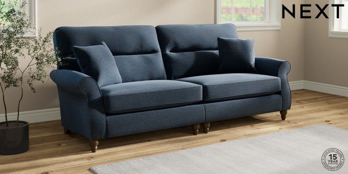 7.2.10 Ashford Highback 4 Seater Sofa Ripple Chenille Dark Blue Low Turned - Mid | Made Click here to use our website with more accessibility support, for example screen readers