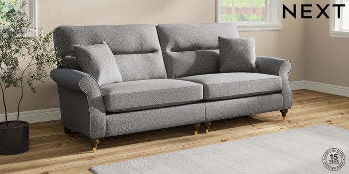 7.2.10 Ashford Highback 4 Seater Sofa Studio Chenille Mid Grey Modern Turned Metal Cap - Mid | Made Click here to use our website with more accessibility support, for example screen readers