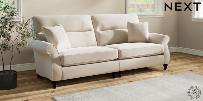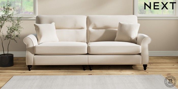 7.2.10 Ashford Highback 4 Seater Sofa Studio Chenille Oyster Low Turned - Dark | Made Click here to use our website with more accessibility support, for example screen readers