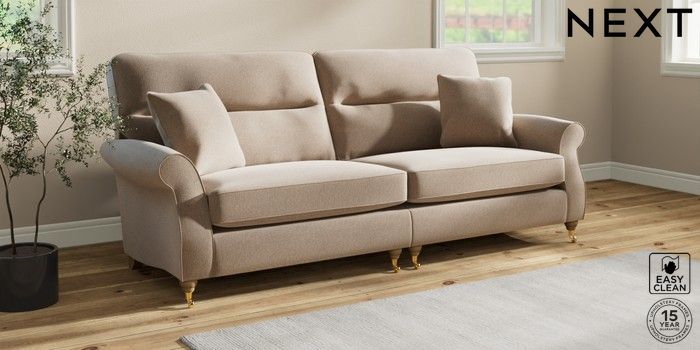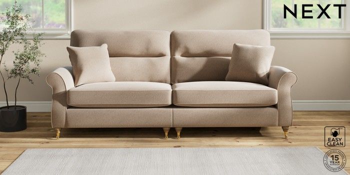 Sink into the Ashford high-back sofa, where country style meets ultimate comfort. Its generous size and elegant scroll arms give it a classic look. You'll love the extra back support from its higher design. The seats are designed for firm support and long-lasting comfort, with a special firmer high-density foam core sandwiched between soft foam toppers to give ultimate support, durability and recovery whilst offering a more tailored look that bounces back into shape – no need for constant plumping! These seat cushions are low maintainence and will return to their shape when they are not in use. We've added scatter cushions filled with a luxurious fibre mix for added comfort. Seat cushions are reversible.