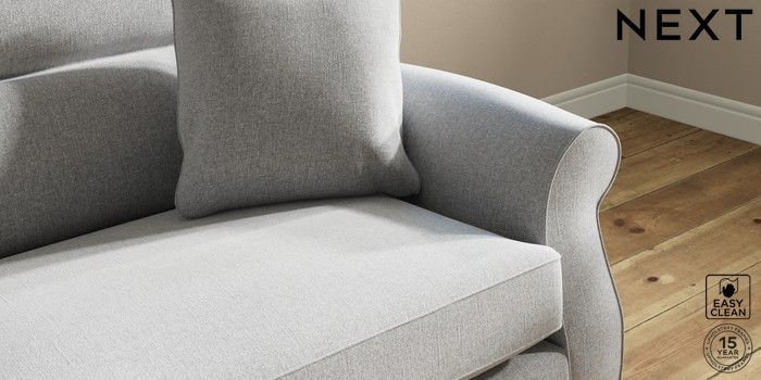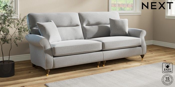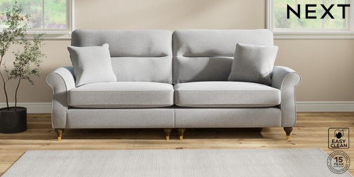 7.2.10 Ashford Highback 4 Seater Sofa Tweedy Blend Easy Clean Light Silver Grey Modern Turned Metal Cap - Mid | Made Click here to use our website with more accessibility support, for example screen readers