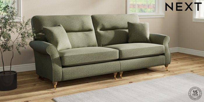 7.2.10 Ashford Highback 4 Seater Sofa Tweedy Chenille Mid Moss Green Castor - Light | Made Click here to use our website with more accessibility support, for example screen readers