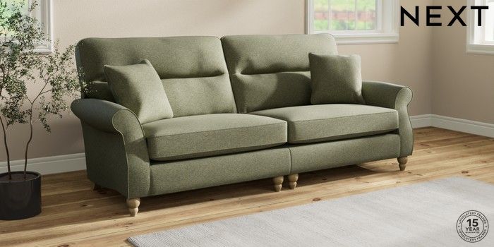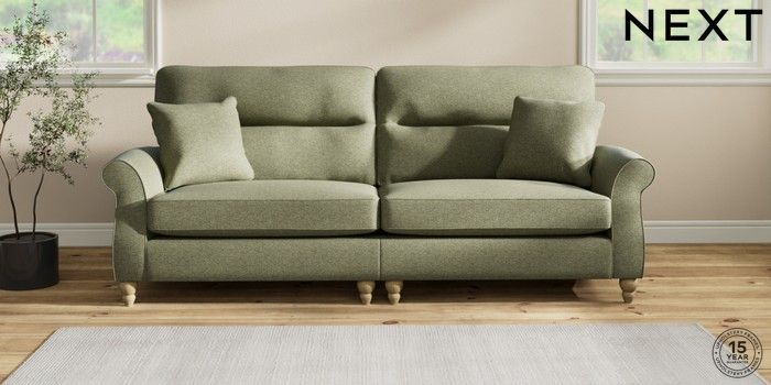 7.2.10 Ashford Highback 4 Seater Sofa Tweedy Chenille Mid Moss Green Low Turned - Light | Made Click here to use our website with more accessibility support, for example screen readers