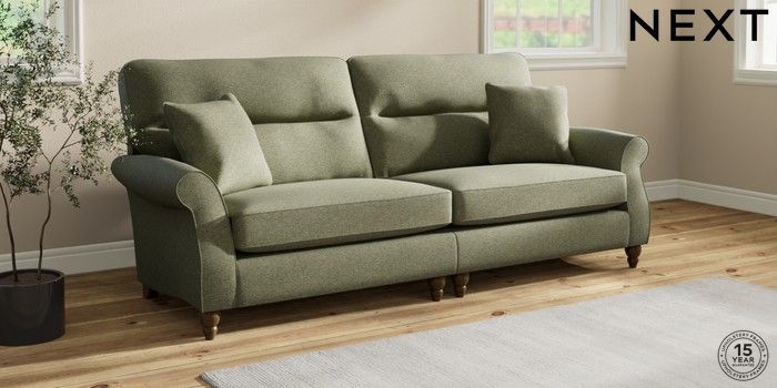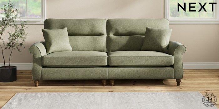 7.2.10 Ashford Highback 4 Seater Sofa Tweedy Chenille Mid Moss Green Low Turned - Mid | Made Click here to use our website with more accessibility support, for example screen readers