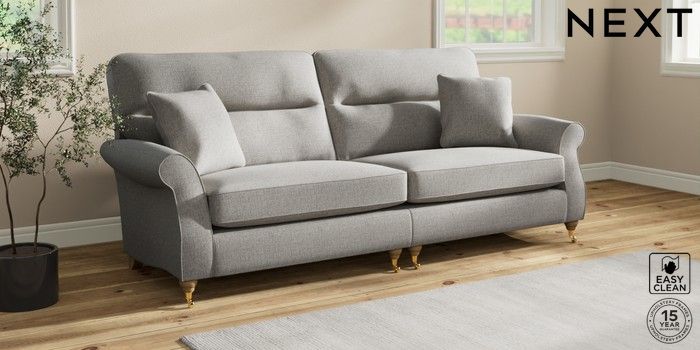 Sink into the Ashford high-back sofa, where country style meets ultimate comfort. Its generous size and elegant scroll arms give it a classic look. You'll love the extra back support from its higher design. The seats are designed for firm support and long-lasting comfort, with a special firmer high-density foam core sandwiched between soft foam toppers to give ultimate support, durability and recovery whilst offering a more tailored look that bounces back into shape – no need for constant plumping! These seat cushions are low maintainence and will return to their shape when they are not in use. We've added scatter cushions filled with a luxurious fibre mix for added comfort. Seat cushions are reversible.