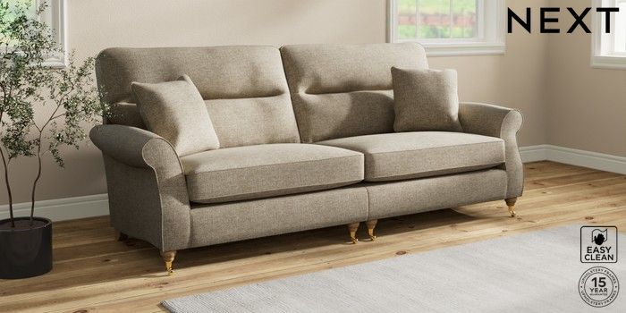 Sink into the Ashford high-back sofa, where country style meets ultimate comfort. Its generous size and elegant scroll arms give it a classic look. You'll love the extra back support from its higher design. The seats are designed for firm support and long-lasting comfort, with a special firmer high-density foam core sandwiched between soft foam toppers to give ultimate support, durability and recovery whilst offering a more tailored look that bounces back into shape – no need for constant plumping! These seat cushions are low maintainence and will return to their shape when they are not in use. We've added scatter cushions filled with a luxurious fibre mix for added comfort. Seat cushions are reversible.
