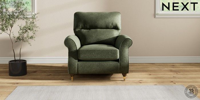 7.2.10 Ashford Highback Armchair Boucle Chenille Dark Moss Green Castor - Mid | Made Click here to use our website with more accessibility support, for example screen readers