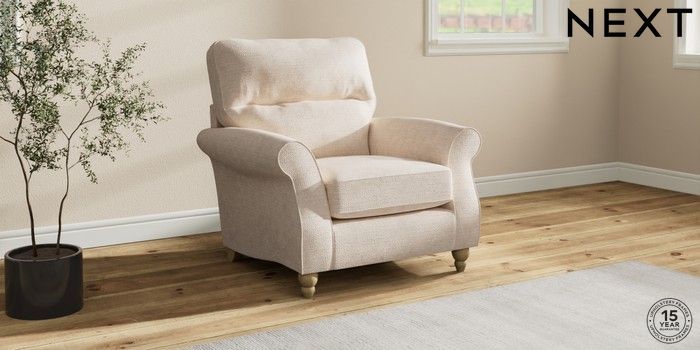 7.2.10 Ashford Highback Armchair Boucle Chenille Oyster Low Turned - Light | Made Click here to use our website with more accessibility support, for example screen readers