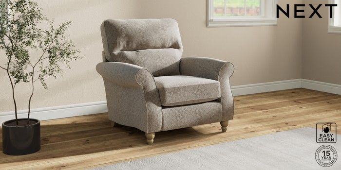 7.2.10 Ashford Highback Armchair Chunky Boucle Easy Clean Dove Low Turned - Light | Made Click here to use our website with more accessibility support, for example screen readers