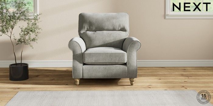 7.2.10 Ashford Highback Armchair Chunky Chenille Light Grey Low Turned - Light | Made Click here to use our website with more accessibility support, for example screen readers