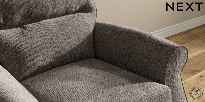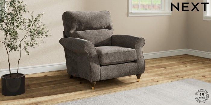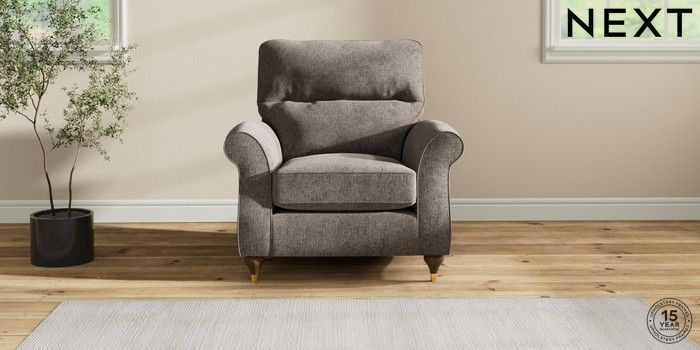 7.2.10 Ashford Highback Armchair Chunky Chenille Mink Brown Modern Turned Metal Cap - Mid | Made Click here to use our website with more accessibility support, for example screen readers