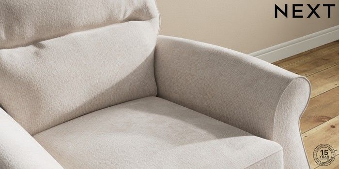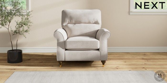 7.2.10 Ashford Highback Armchair Chunky Chenille Oyster Modern Turned Metal Cap - Mid | Made Click here to use our website with more accessibility support, for example screen readers