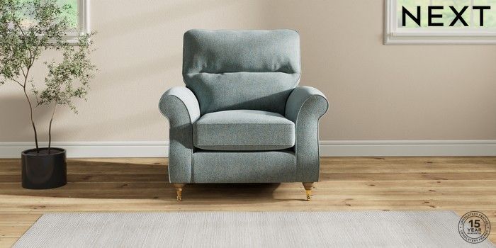 7.2.10 Ashford Highback Armchair Chunky Marl Mid Blue Castor - Light | Made Click here to use our website with more accessibility support, for example screen readers
