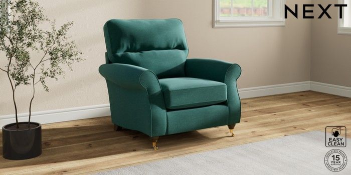 7.2.10 Ashford Highback Armchair Fine Chenille Easy Clean Dark Juniper Green Castor - Mid | Made Click here to use our website with more accessibility support, for example screen readers