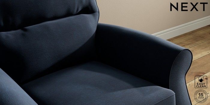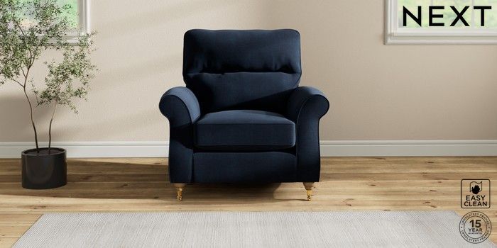 7.2.10 Ashford Highback Armchair Fine Chenille Easy Clean Dark Navy Blue Castor - Light | Made Click here to use our website with more accessibility support, for example screen readers