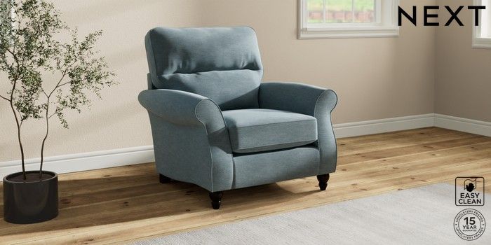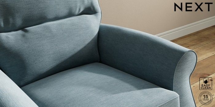 7.2.10 Ashford Highback Armchair Fine Chenille Easy Clean Mid Blue Low Turned - Dark | Made Click here to use our website with more accessibility support, for example screen readers