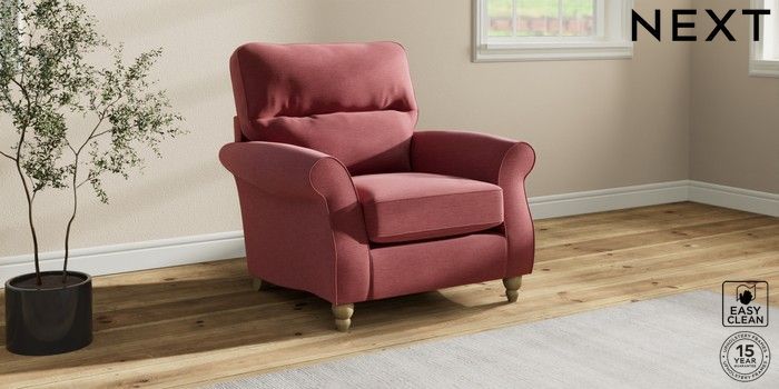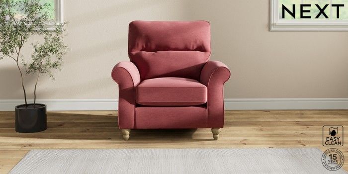7.2.10 Ashford Highback Armchair Fine Chenille Easy Clean Mid Pink Low Turned - Light | Made Click here to use our website with more accessibility support, for example screen readers