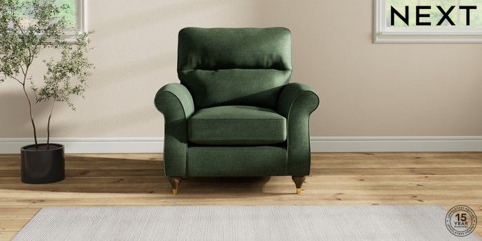 7.2.10 Ashford Highback Armchair Luxe Chenille Dark Green Modern Turned Metal Cap - Mid | Made Click here to use our website with more accessibility support, for example screen readers