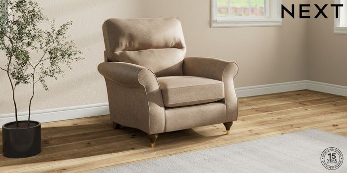 7.2.10 Ashford Highback Armchair Luxe Chenille Mid Camel Beige Modern Turned Metal Cap - Mid | Made Click here to use our website with more accessibility support, for example screen readers