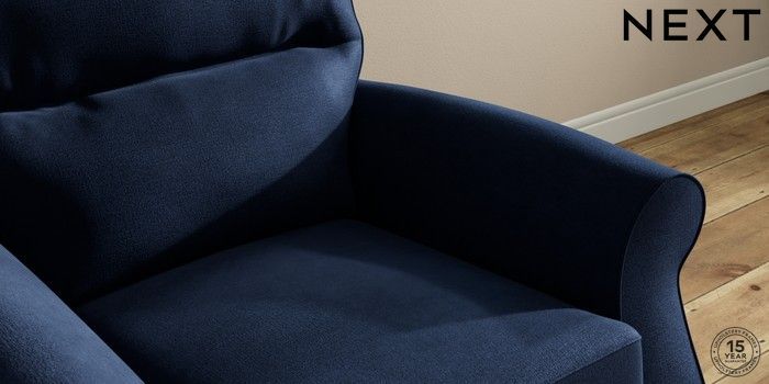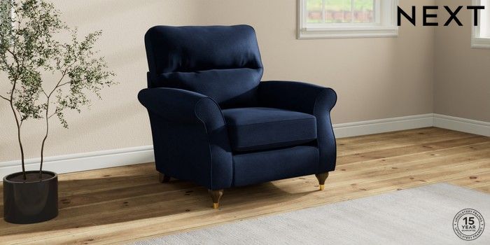 7.2.10 Ashford Highback Armchair Luxe Chenille Navy Blue Modern Turned Metal Cap - Mid | Made Click here to use our website with more accessibility support, for example screen readers