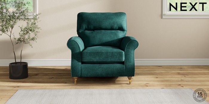 7.2.10 Ashford Highback Armchair Plush Chenille Dark Teal Green Castor - Light | Made Click here to use our website with more accessibility support, for example screen readers
