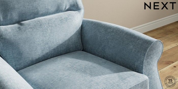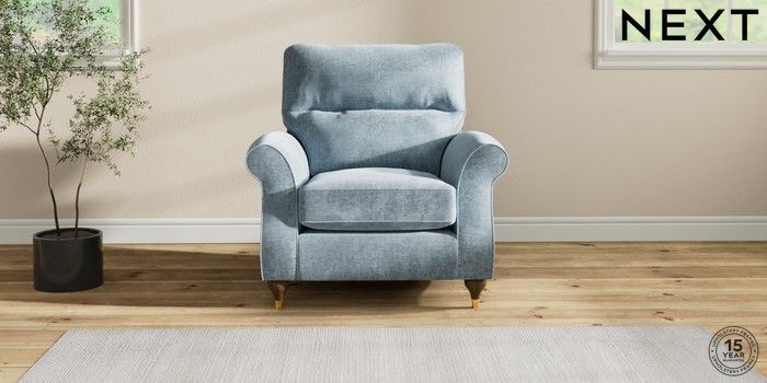 7.2.10 Ashford Highback Armchair Plush Chenille Light Blue Modern Turned Metal Cap - Mid | Made Click here to use our website with more accessibility support, for example screen readers
