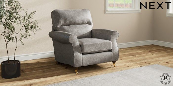7.2.10 Ashford Highback Armchair Plush Chenille Light Grey Castor - Mid | Made Click here to use our website with more accessibility support, for example screen readers