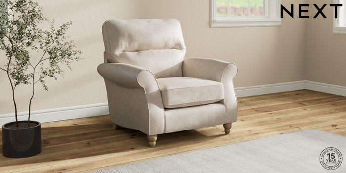 7.2.10 Ashford Highback Armchair Plush Chenille Oyster Low Turned - Light | Made Click here to use our website with more accessibility support, for example screen readers