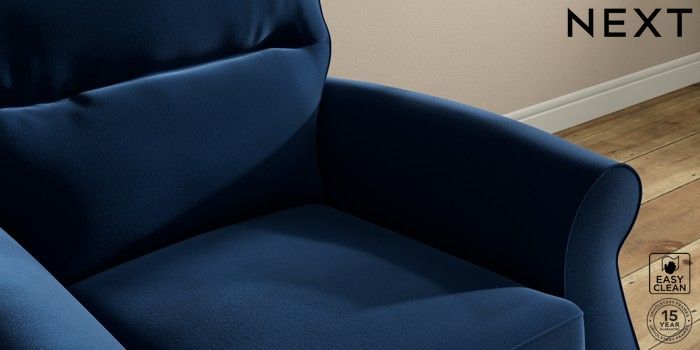 7.2.10 Ashford Highback Armchair Plush Velvet Easy Clean Navy Blue Low Turned - Mid | Made Click here to use our website with more accessibility support, for example screen readers