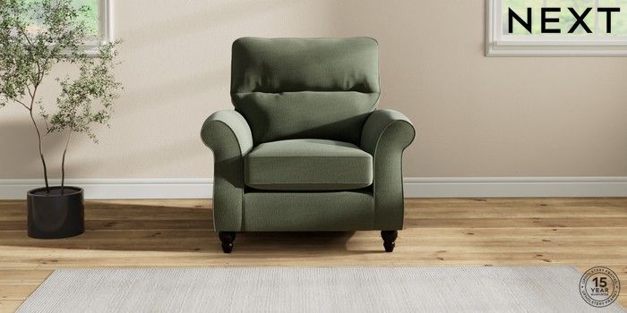 7.2.10 Ashford Highback Armchair Relaxed Linen Look Dark Green Low Turned - Dark | Made Click here to use our website with more accessibility support, for example screen readers