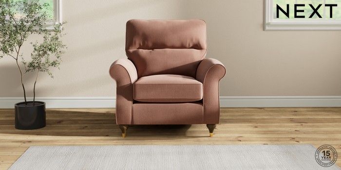 7.2.10 Ashford Highback Armchair Relaxed Linen Look Light Rust Brown Modern Turned Metal Cap - Mid | Made Click here to use our website with more accessibility support, for example screen readers