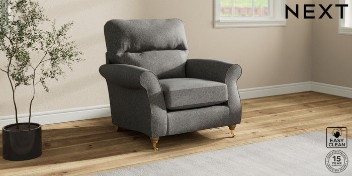 7.2.10 Ashford Highback Armchair Tweedy Blend Easy Clean Dark Grey Castor - Light | Made Click here to use our website with more accessibility support, for example screen readers