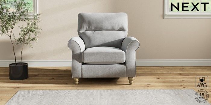 7.2.10 Ashford Highback Armchair Tweedy Blend Easy Clean Light Silver Grey Low Turned - Light | Made Click here to use our website with more accessibility support, for example screen readers
