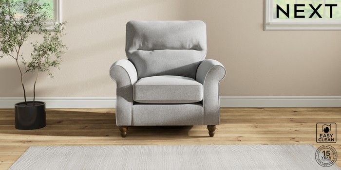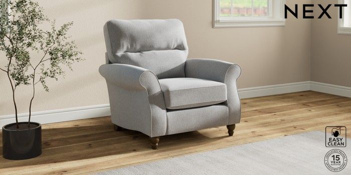 7.2.10 Ashford Highback Armchair Tweedy Blend Easy Clean Light Silver Grey Low Turned - Mid | Made Click here to use our website with more accessibility support, for example screen readers