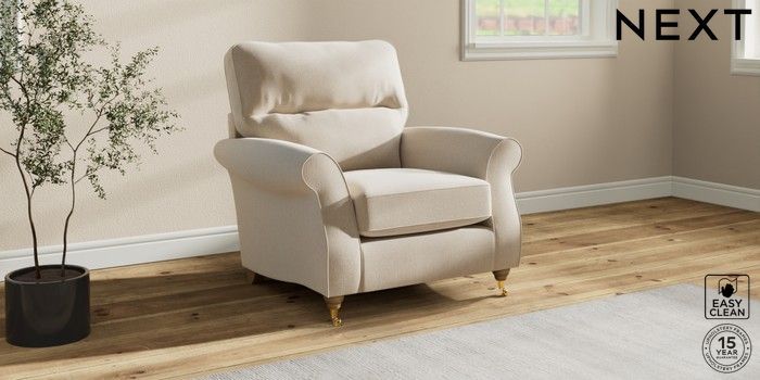 7.2.10 Ashford Highback Armchair Tweedy Blend Easy Clean Oyster Castor - Light | Made Click here to use our website with more accessibility support, for example screen readers