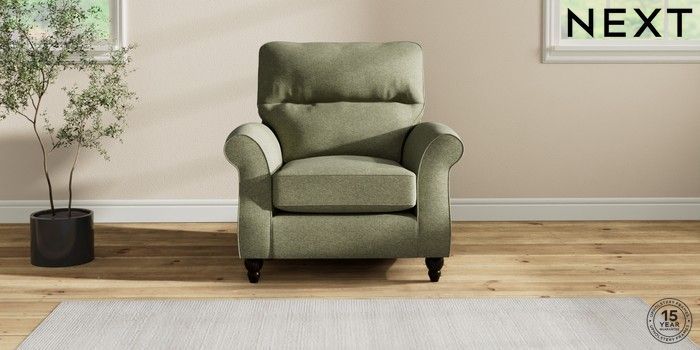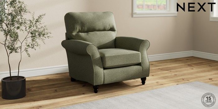7.2.10 Ashford Highback Armchair Tweedy Chenille Mid Moss Green Low Turned - Dark | Made Click here to use our website with more accessibility support, for example screen readers