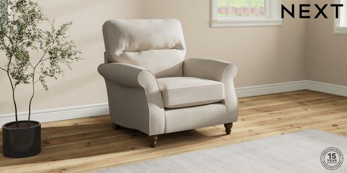 7.2.10 Ashford Highback Armchair Tweedy Chenille Oyster Low Turned - Mid | Made Click here to use our website with more accessibility support, for example screen readers